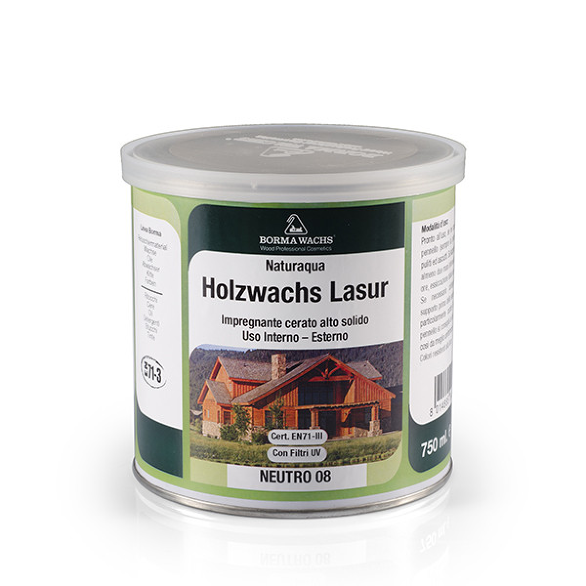 Природний водний віск і смола на основі непілінгу, два-три шари, просочення. Продукт проникає глибоко в деревину, збільшуючи зерно та забезпечуючи м“яку поліровану обробку. Витрата: 8 - 12 м2/л. Температура: + 5 °C/+30 °C Використання: Інтер“єр/ Екстер“єр з УФ-фільтрами. Високоякісні речовини та УФ-фільтри в продукті запобігають утворенню гнилі та напади комах, як-от деревний черв“як і деякі жуки, гарантуючи водночас оптимальну стійкість до погодних умов. Швидке сушіння та майже вільний VOC завдяки своїй природній щільності полегшує нанесення пензля.
