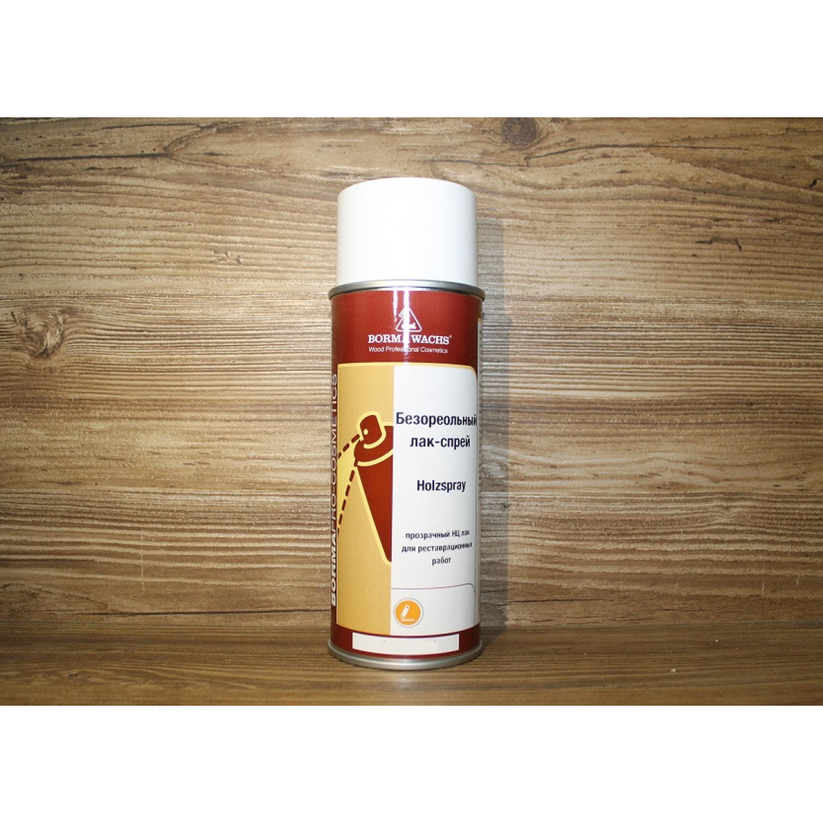 Безорельний лак-спрей, швидковисихний, Holzspray, Borma Wachs, Touch Up&Fillers Line, 90% gloss, 400 мл.